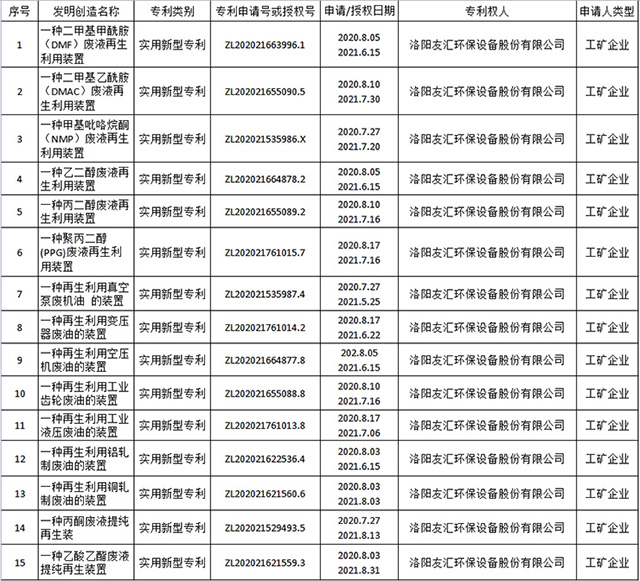 洛陽友匯科技有限公司是一家技術(shù)型企業(yè),具有強大的廢油再生利用設(shè)備的研發(fā)設(shè)計能力。是集科研設(shè)計、生產(chǎn)安裝、設(shè)備調(diào)試為一體的從事廢礦物油再生利用設(shè)備研究開發(fā)利用的企業(yè)。公司已出售近20套廢油再生利用設(shè)備,產(chǎn)品行銷海內(nèi)外。公司目前已擁有廢油再生技術(shù)專 利(詳見資質(zhì)榮譽)15余項,是國標《廢礦物油類潤滑油處理處置方法》GB/T 41961-2022的主要制定單位,同時公司總經(jīng)理王建波先生為主要起草人之一。